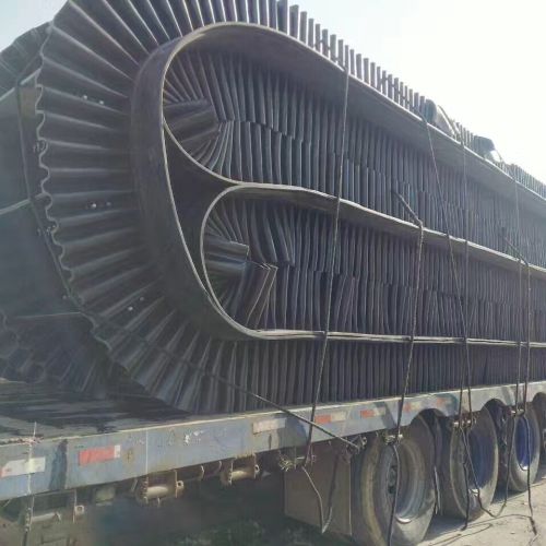 大傾角波狀擋邊輸送帶又叫裙邊隔板輸送帶,是由基帶、擋邊、橫隔板3部分組成。擋邊起預防物料測滑撒落的作用。